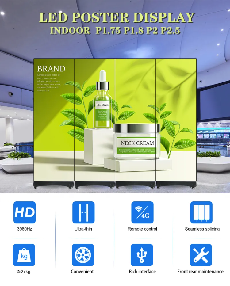 Produkt Besonderheit Innen volll Farbiges digitales Posterdisplay, 3G 4G WIFI Smart Poster LED-Bildschirm,P2 P2,5 P3 P4 P5 Spiegel-LED-Anzeige.